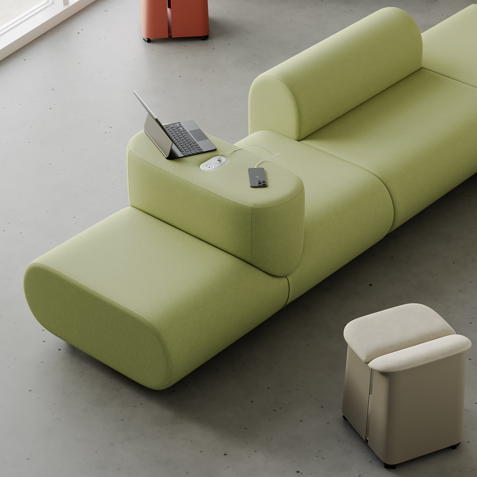 Inspired by musical notes, the Medy Modular Seating Series offers innovative solutions that reflect the rhythm of any space. Perfectly adapting to diverse needs—from dynamic communal areas to quiet corners—its oval, durable forms combine superior comfort with elegance. Integrated USB ports enhance functionality, making it ideal for hotels, hospitals, and social spaces. Medy can also serve as a temporary workspace during short waits. The Medy Lounge sub-collection offers flexible configurations, while the Medy Sofa reinterprets the classic Chesterfield with a modern, elegant twist. This versatile and stylish series supports space efficiency, user comfort, and lasting quality.