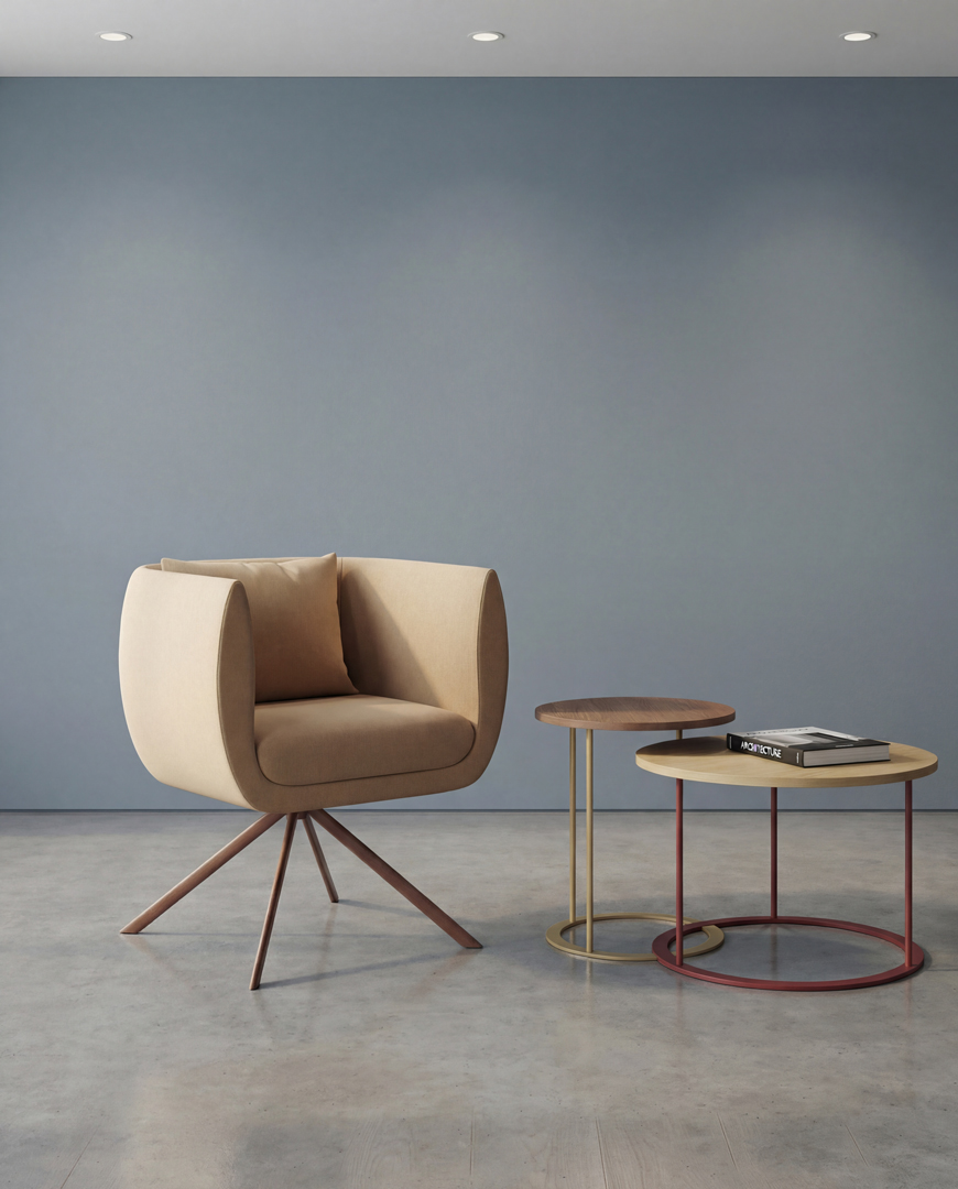 Ira is a coffee table series designed to work alone or together. Each table comes in different heights and diameters, so you can layer them for a staggered look or use a single piece as a standalone accent. The flexibility makes Ira practical for reception areas, informal meeting zones, or anywhere you need surface space without visual bulk.