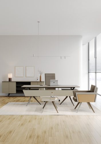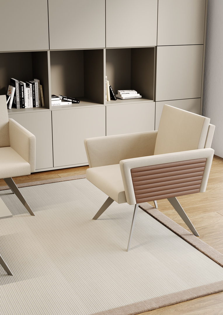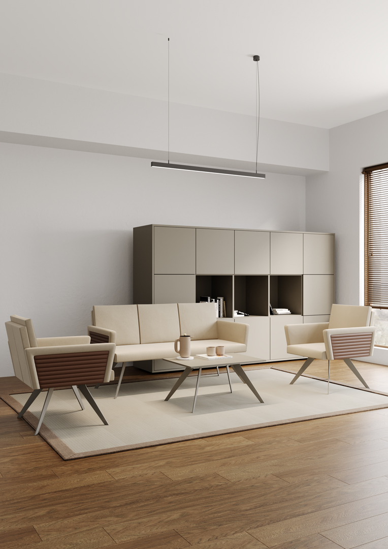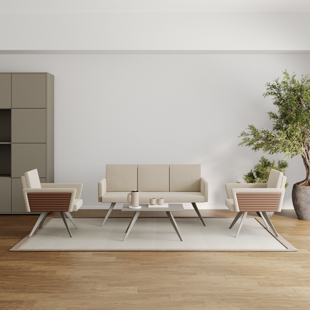 The body comes upholstered in fabric or leather depending on how formal the space needs to be. Armchair, two-seater, and three-seater configurations let you build out reception areas, executive offices, or waiting zones with consistent design.