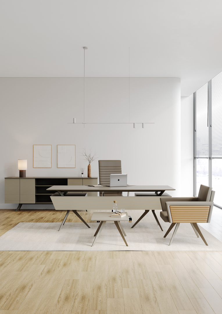 Space is a seating group defined by clean geometry and metal legs that lift the frame off the floor. The visual lightness makes rooms feel less crowded even when fully furnished.