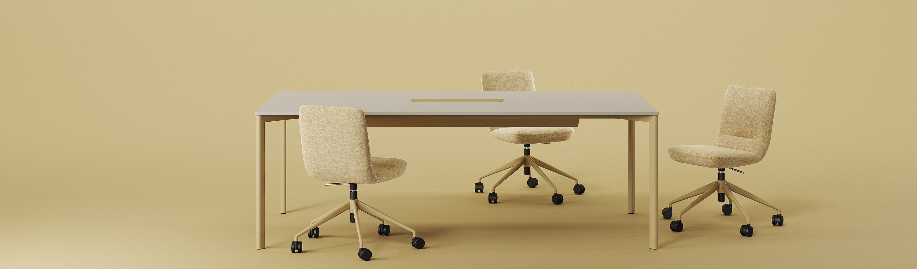 The Evol minimalist meeting table combines minimal design with flexibility. With its eco-friendly and economical structure, it is an ideal choice for modern meeting spaces. Offering versatile solutions and a sustainable approach, this functional piece of furniture creates efficient and environmentally conscious work environments, supporting collaborative settings and lasting quality.