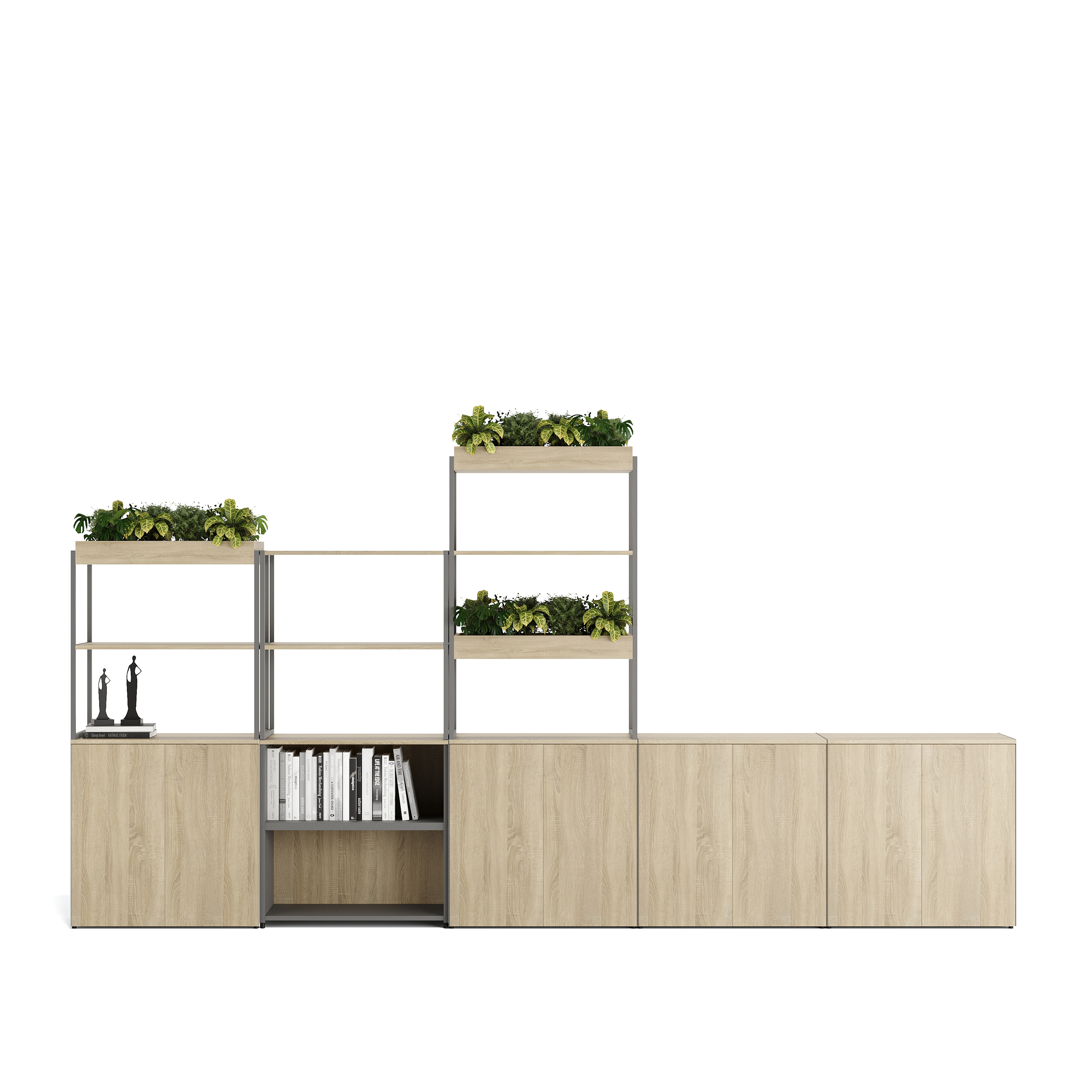 The Tin modular storage solution offers superior functional storage for offices, open spaces, or living areas with its simple design and flexible modular structure. Customizable with different shelving layouts and block options, Tin allows for the creation of both open and closed spaces for versatile use. This innovative piece of furniture saves space while creating an organized and aesthetically pleasing work environment.
