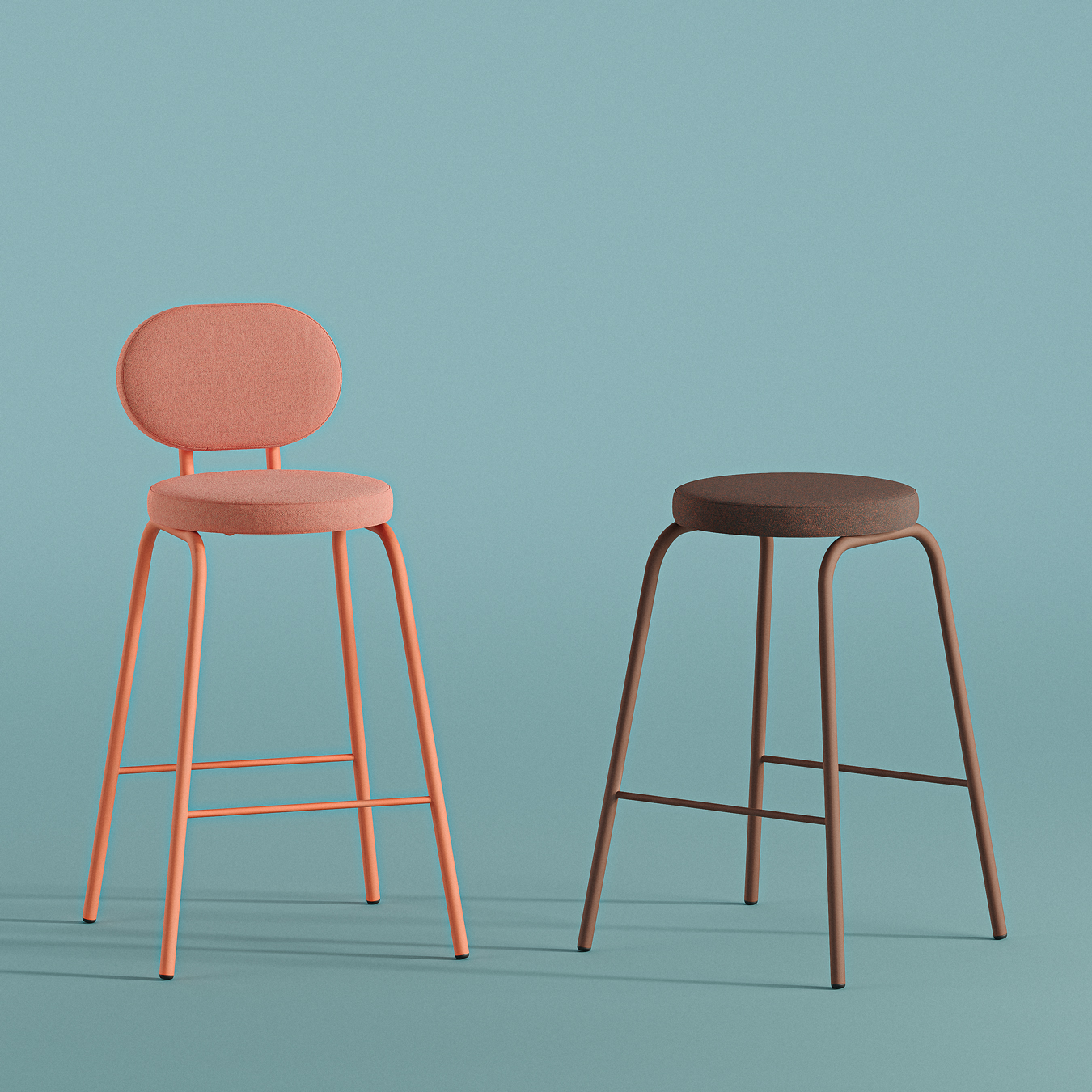 Available in versions with or without a backrest, the Lucky bar stool offers two different seat heights, making it versatile for both bar and counter settings. With a variety of fabric and metal finishes, the Lucky collection fits beautifully in both residential and commercial environments, effortlessly enhancing any casual interior style.