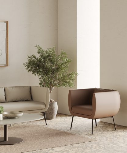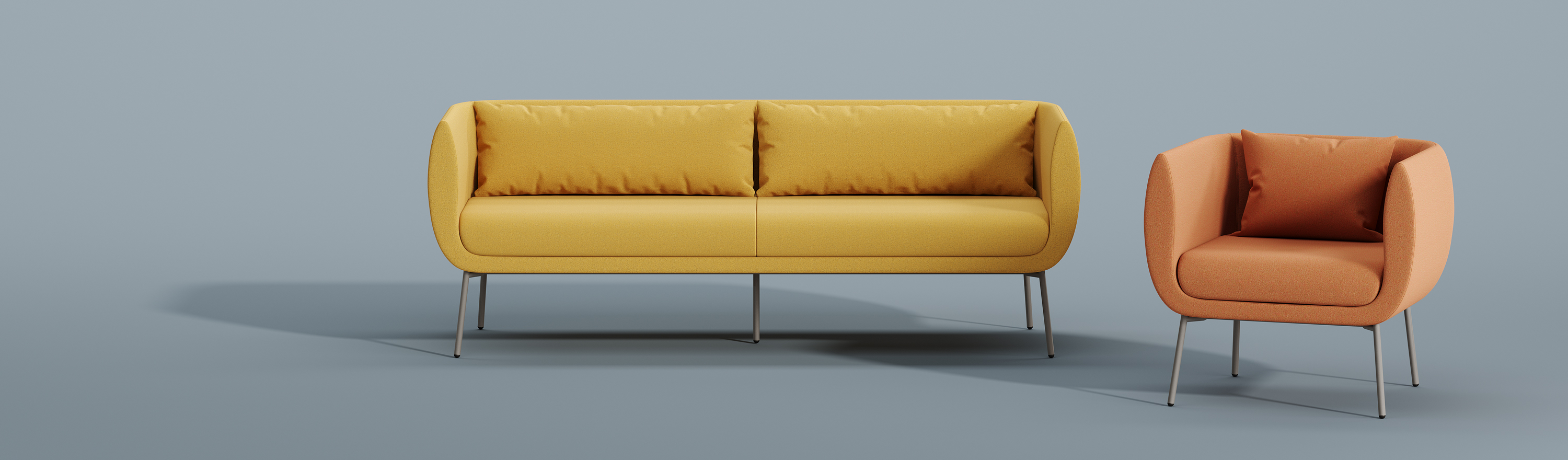 The Odissea lounge sofa brings warmth and premium comfort to modern interiors with its soft, flowing form and contemporary design. Its customizable fabric or faux leather upholstery allows it to adapt to any workspace. Electrostatic-painted metal legs complete its elegant look. This human-centered piece of furniture is an ideal choice for waiting areas, modern lounges, and executive offices, supporting employee well-being.