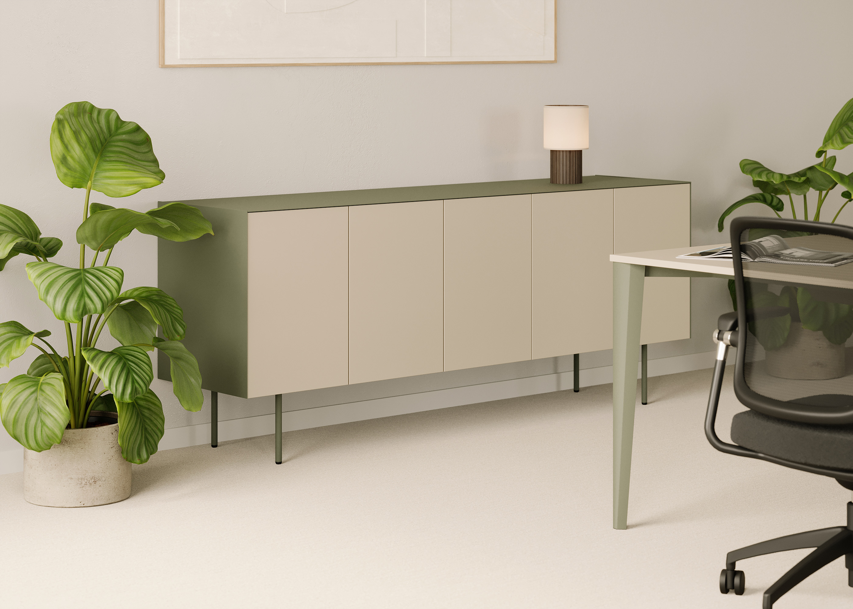 The Tin modern console is a complementary piece for modern offices with its clean lines and compact form. Its superior functional design makes it stand out as a decorative and practical storage solution in various settings, from executive offices to shared workspaces. With its minimalist lines, it creates visual harmony in work areas while supporting space efficiency and lasting quality.