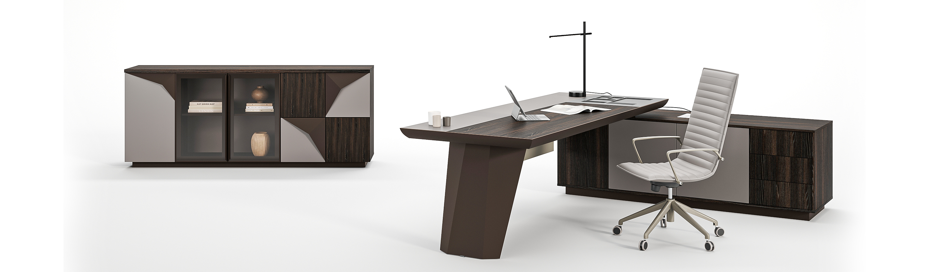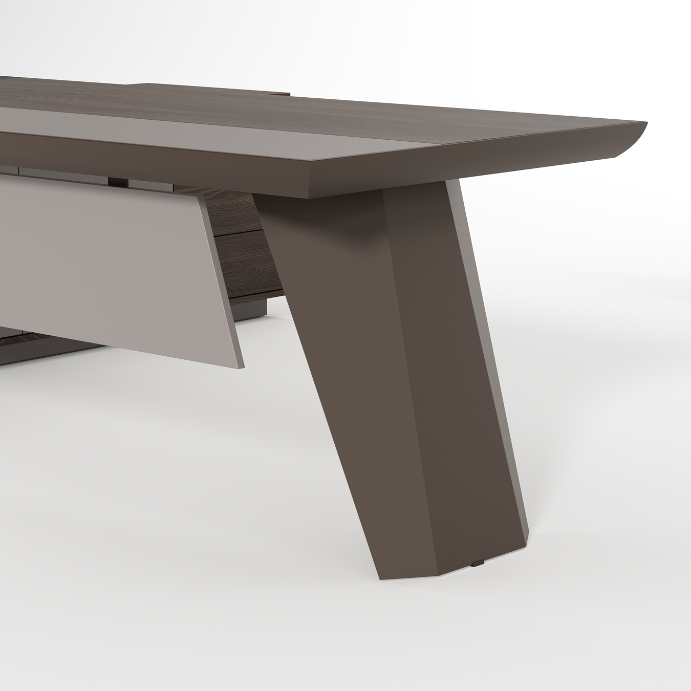 The Fly executive furniture set brings dynamism and elegance to executive offices through the masterful and innovative use of diverse materials. Its sculptural design presents a strong and impressive aesthetic presence. With its modern and highly functional structure, this high-quality furniture creates a prestigious atmosphere in any setting, combining productivity and aesthetics to deliver lasting quality.