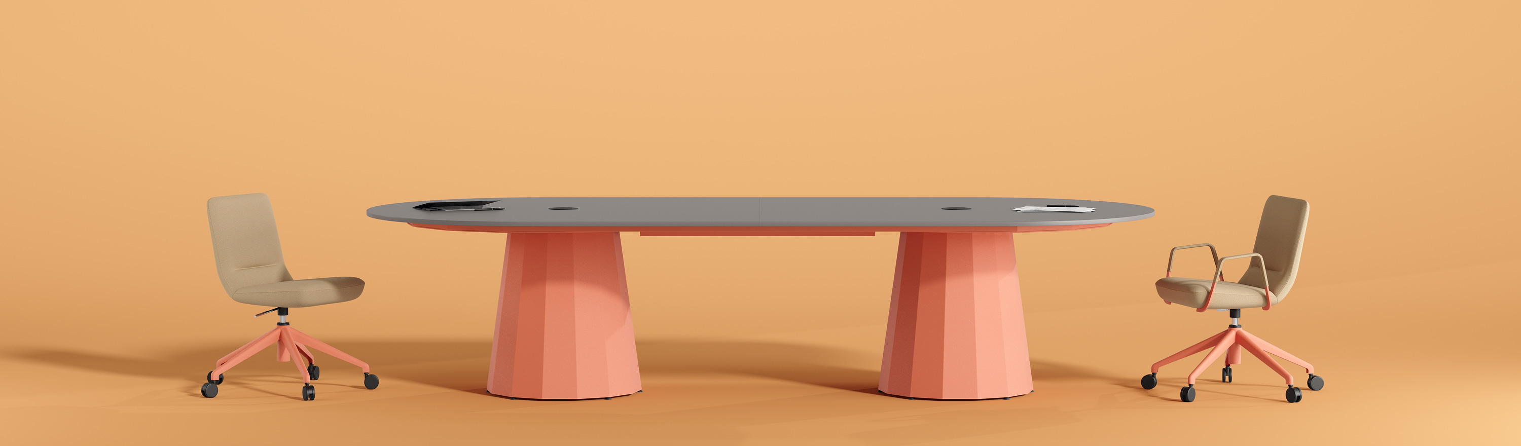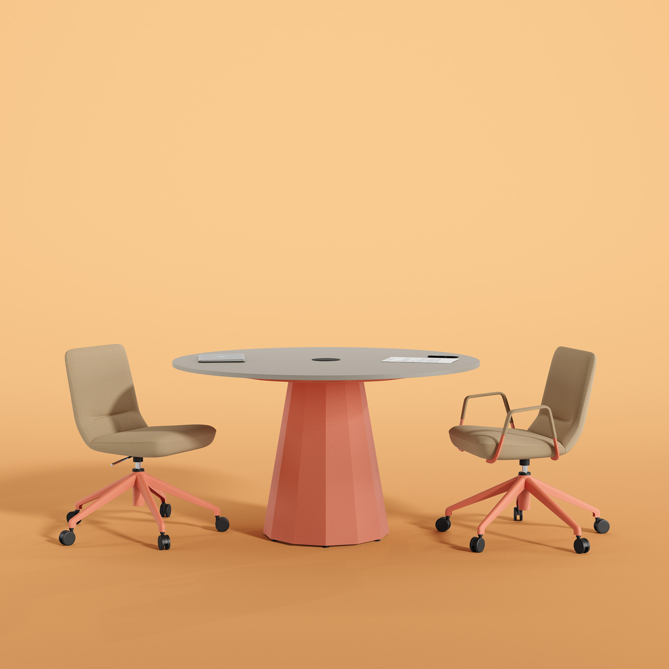Designed to match the dynamics of today’s work culture, the Denis innovative meeting table series offers superior meeting solutions in a variety of settings, from corporate offices to creative workspaces. Its iconic conical legs and polygonal base shaped with metal bending techniques create a workspace that is both aesthetic and functional. With smart cable management and a range of bistro, bar, and standard height options, Denis adds a stylish, sculptural touch to meeting and break areas. Versatile and of lasting quality, this piece of furniture is equally at home in offices, cafés, hotels, educational spaces, and exhibition areas, supporting collaborative environments and productivity.