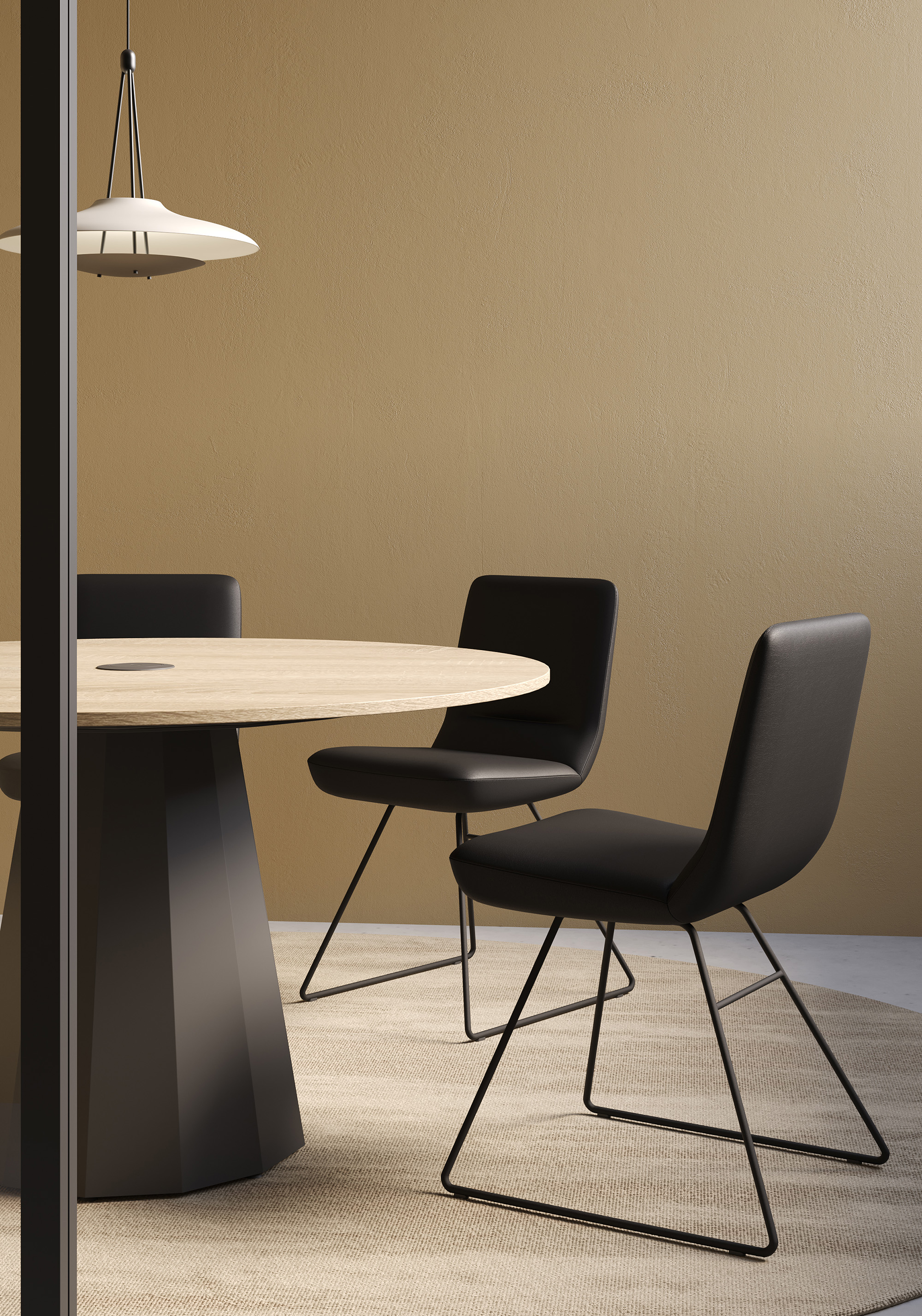 Designed to match the dynamics of today’s work culture, the Denis innovative meeting table series offers superior meeting solutions in a variety of settings, from corporate offices to creative workspaces. Its iconic conical legs and polygonal base shaped with metal bending techniques create a workspace that is both aesthetic and functional. With smart cable management and a range of bistro, bar, and standard height options, Denis adds a stylish, sculptural touch to meeting and break areas. Versatile and of lasting quality, this piece of furniture is equally at home in offices, cafés, hotels, educational spaces, and exhibition areas, supporting collaborative environments and productivity.