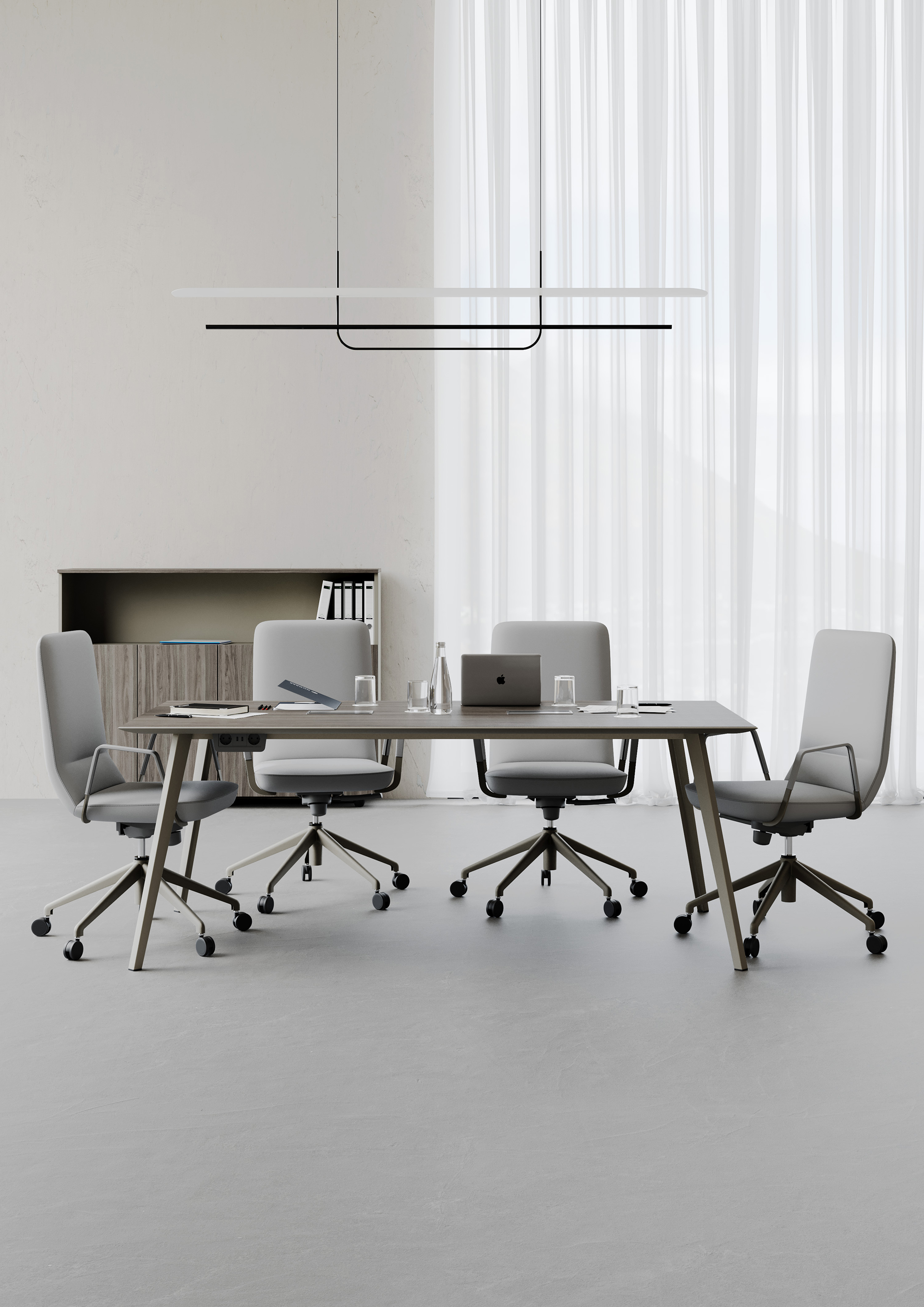 Combining superior aesthetics and functionality in meeting spaces, Sail offers long-lasting use with its durable cast-iron legs and sturdy aluminum frame. Its compatibility with sofas, bar tables, and modular partitions helps create a cohesive and harmonious office language. This innovative piece of furniture supports lasting quality and productive, collaborative environments.