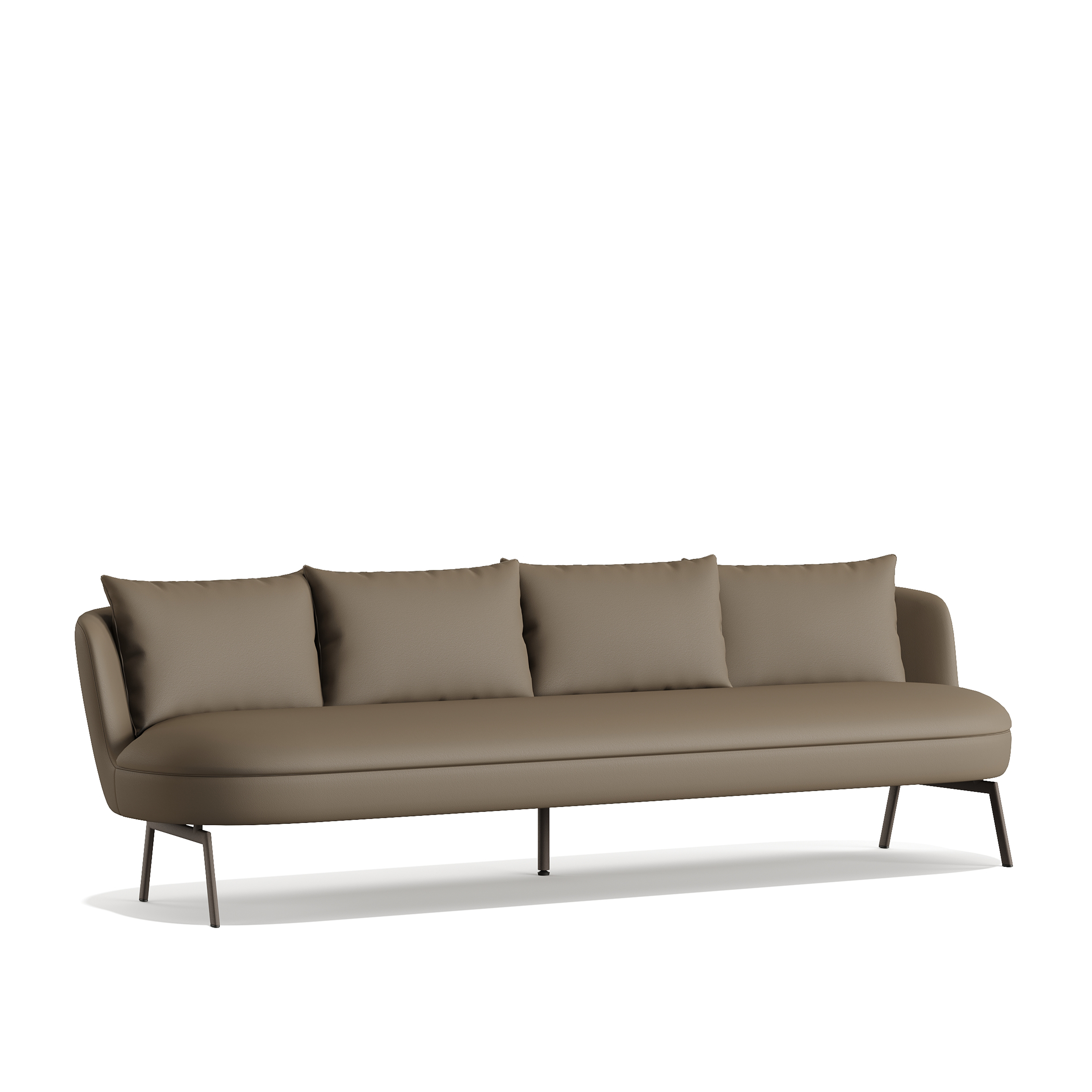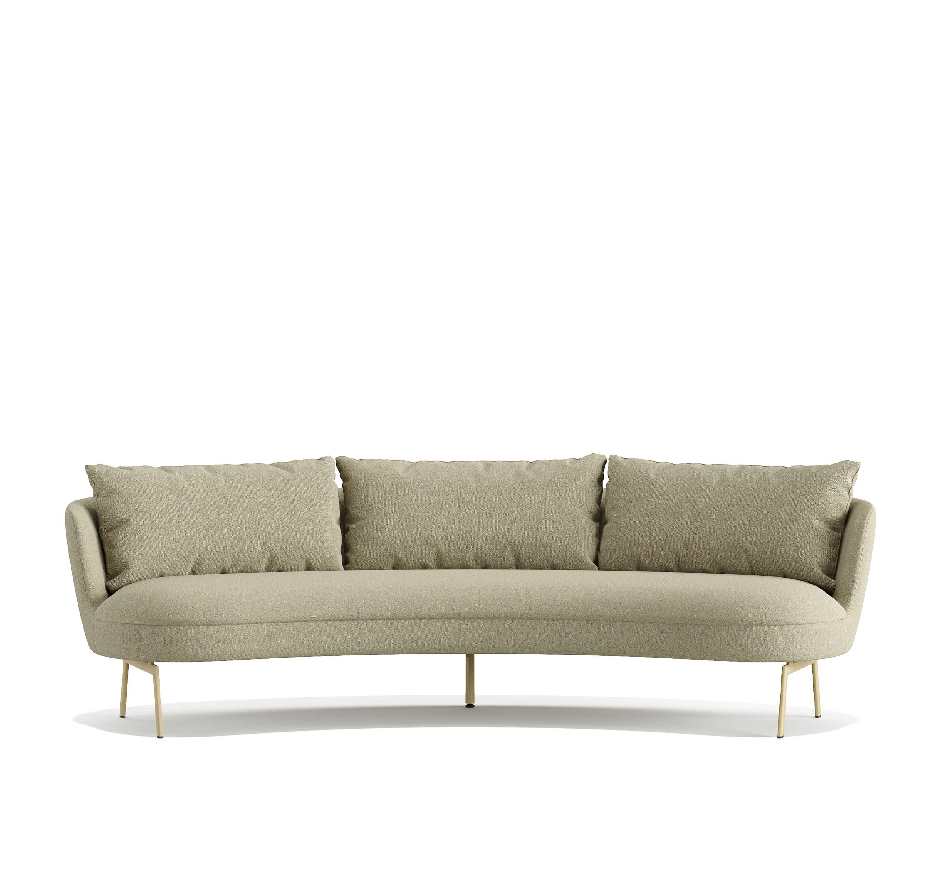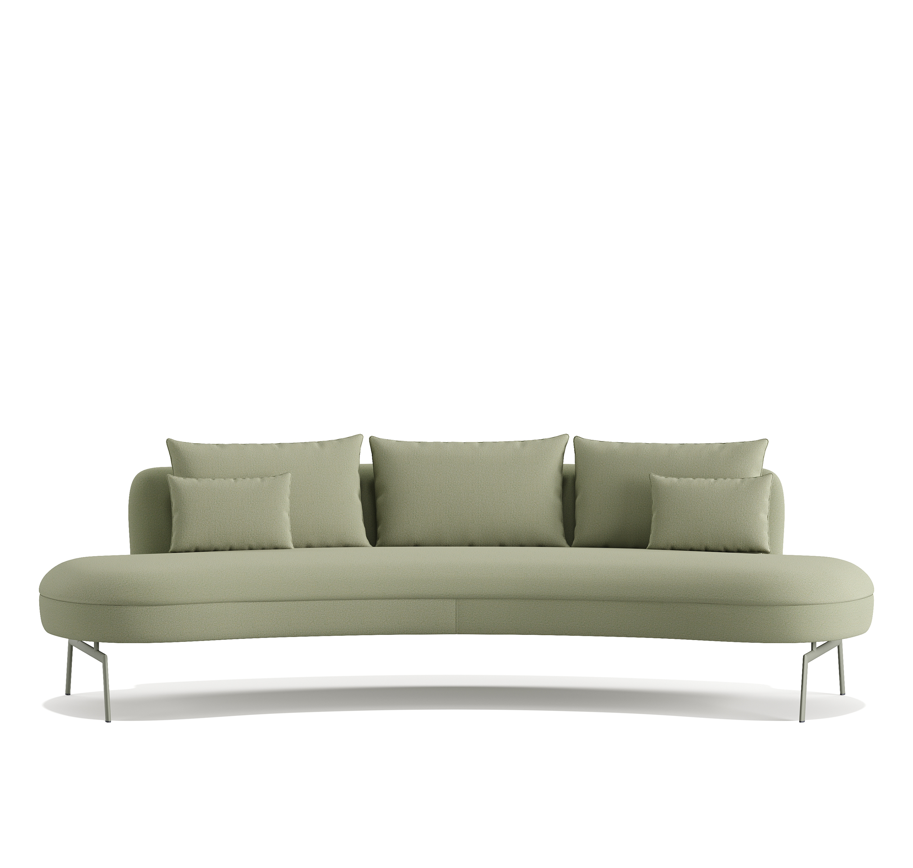 Rota modern kanepe, oval ve akışkan formuyla mekânlara modern, heykelsi bir dokunuş katar. Zarif kavisli hatları ve dayanıklı metal ayakları sayesinde hem estetik hem de dengeli bir duruş sergiler. Yaşam alanlarından otel lobilerine kadar farklı ortamlarda üstün estetik ve maksimum konforu bir arada sunan bu çok yönlü ve şık oturma çözümü, alan verimliliğini, kullanıcı refahını ve kalıcı kaliteyi destekler.