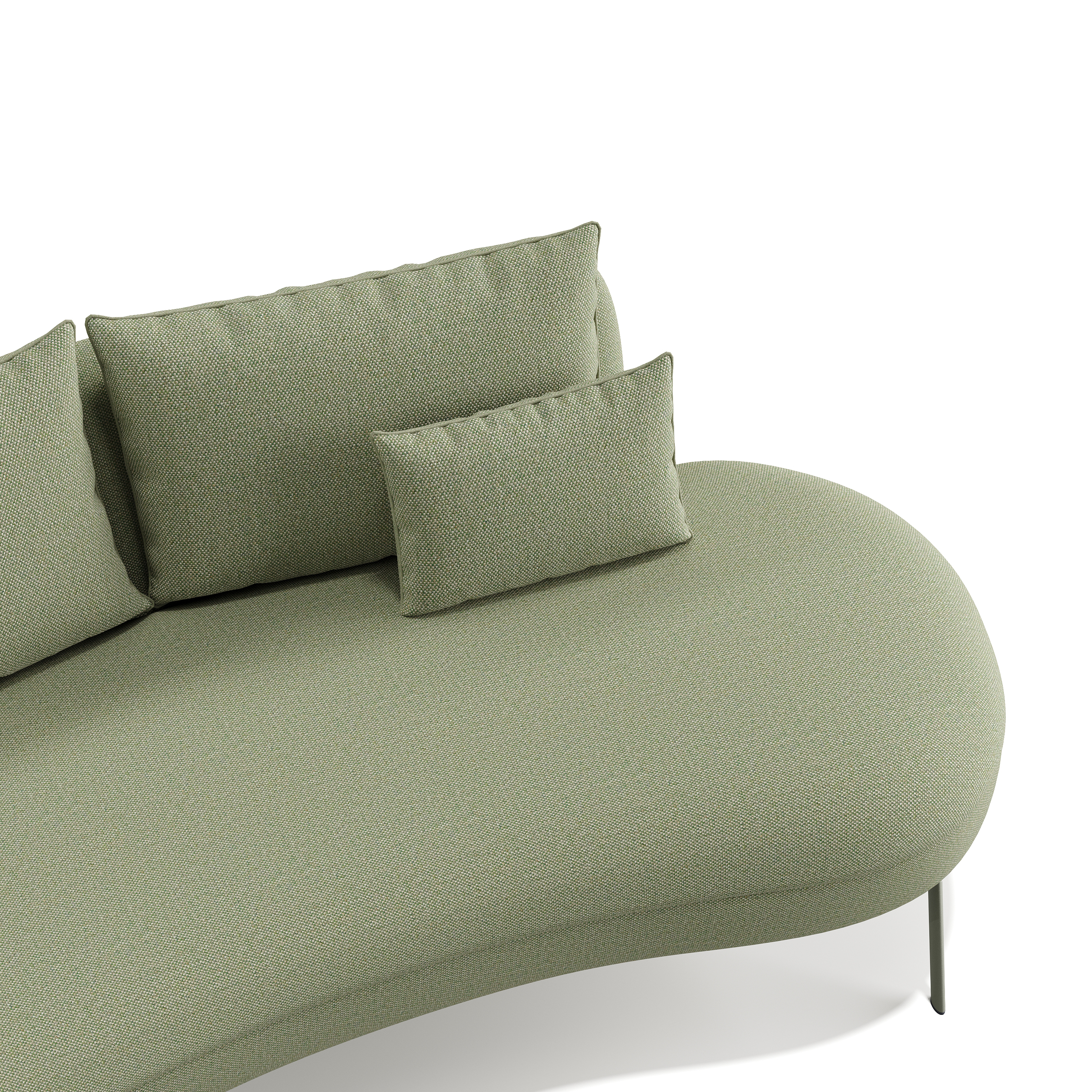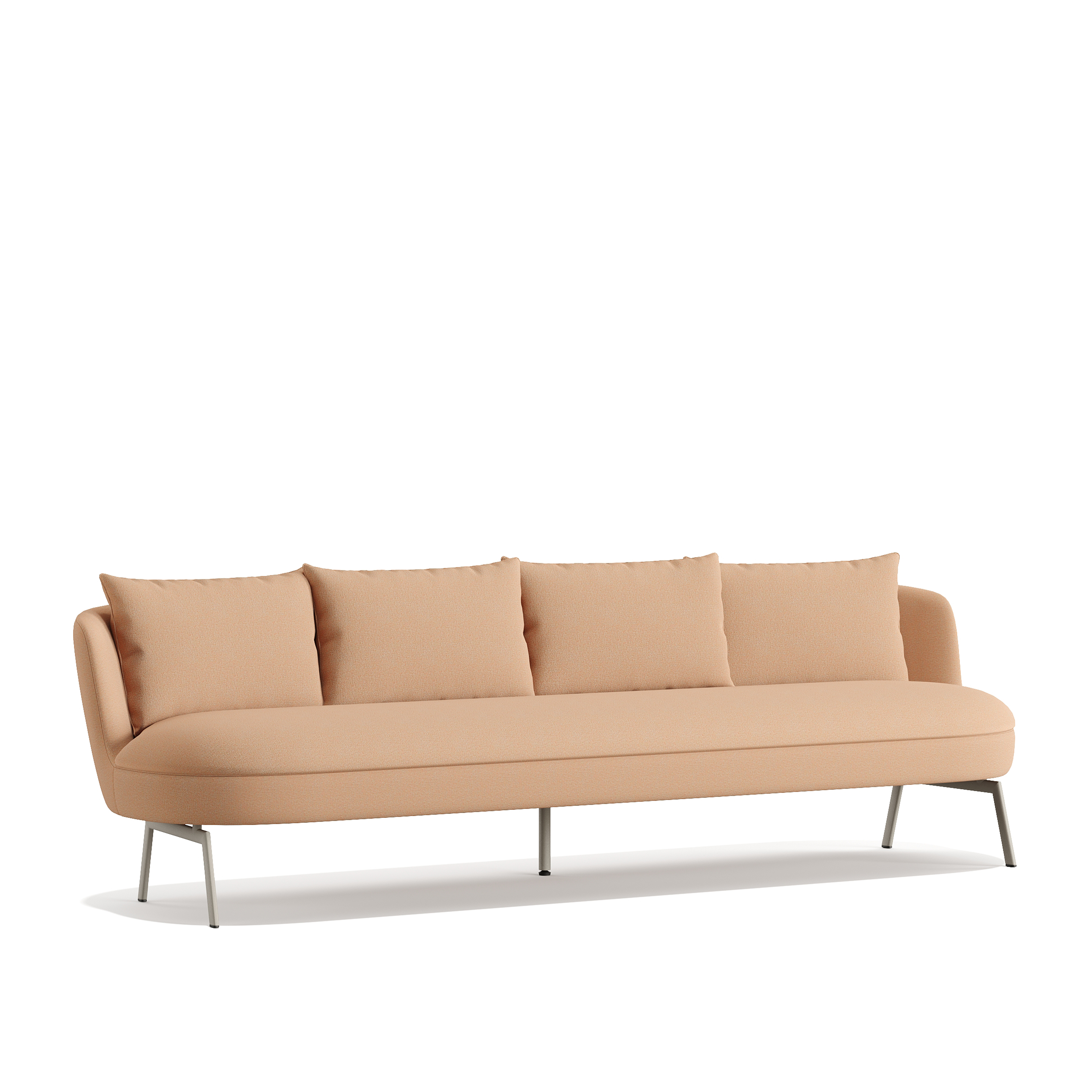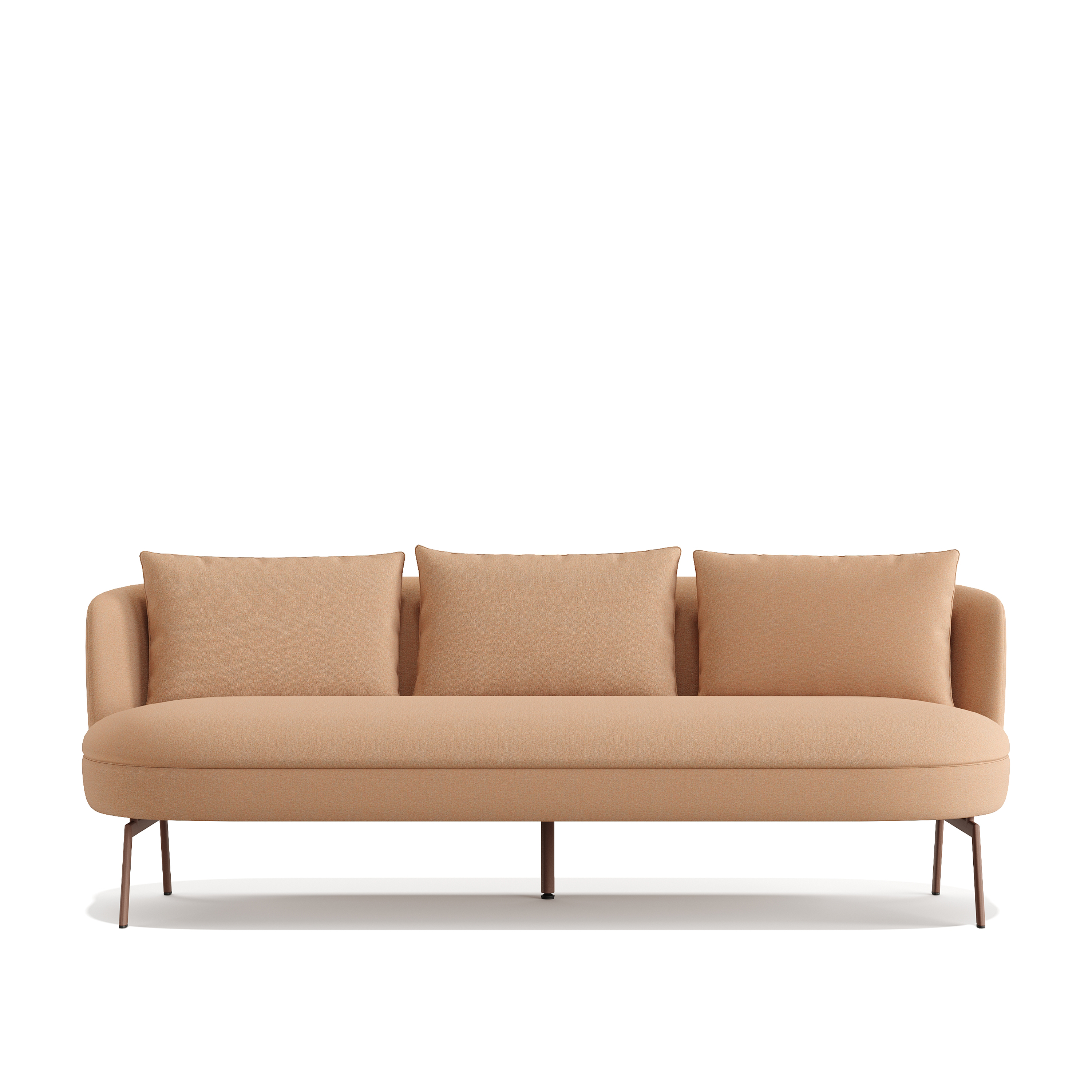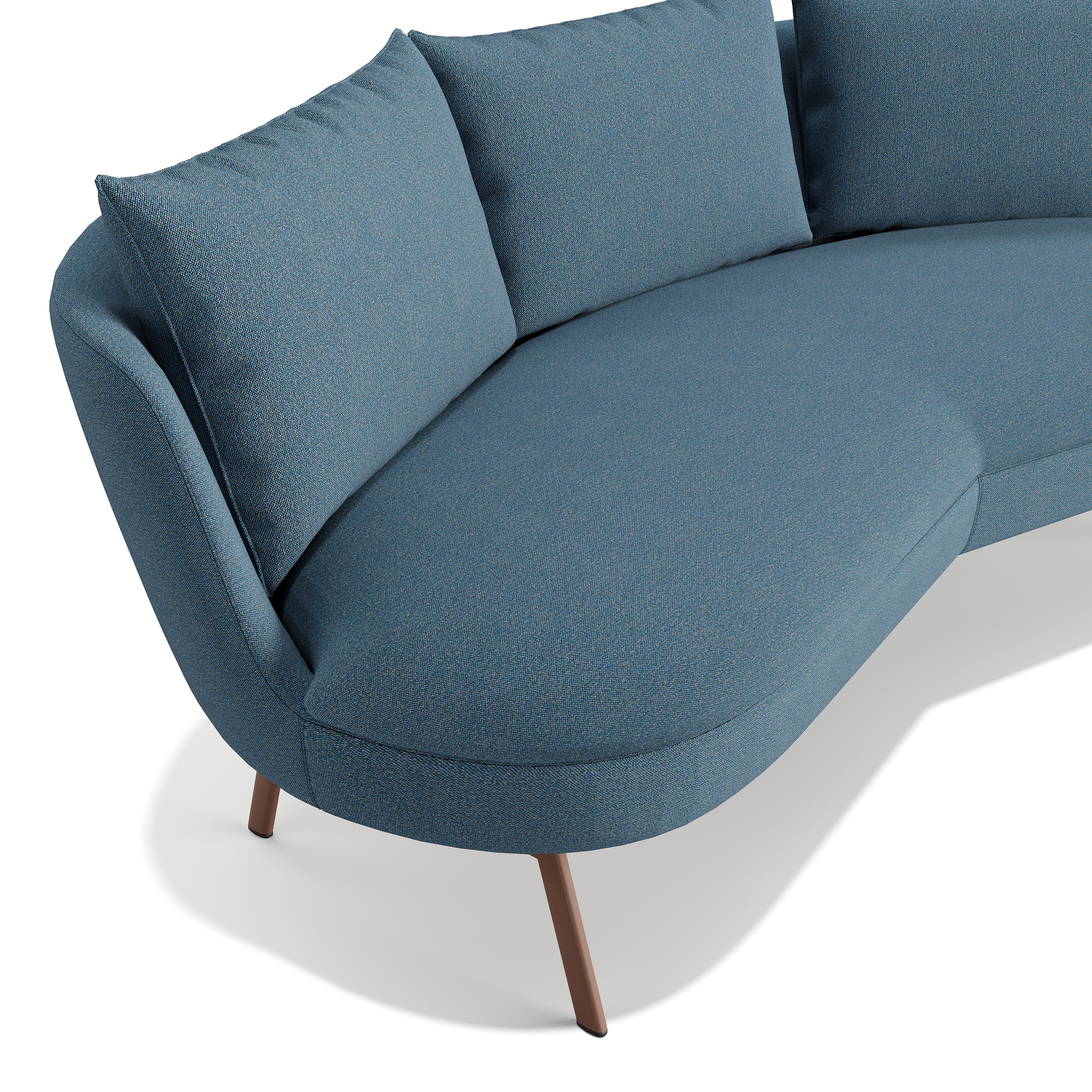 Rota modern kanepe, oval ve akışkan formuyla mekânlara modern, heykelsi bir dokunuş katar. Zarif kavisli hatları ve dayanıklı metal ayakları sayesinde hem estetik hem de dengeli bir duruş sergiler. Yaşam alanlarından otel lobilerine kadar farklı ortamlarda üstün estetik ve maksimum konforu bir arada sunan bu çok yönlü ve şık oturma çözümü, alan verimliliğini, kullanıcı refahını ve kalıcı kaliteyi destekler.