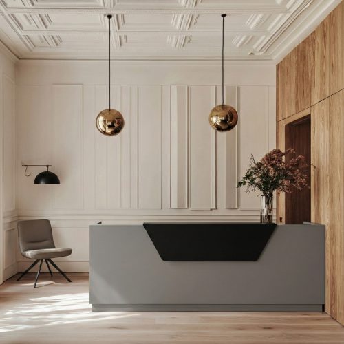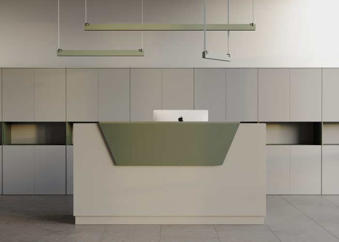 The Riva modern reception desk adds character to contemporary reception areas with its distinctive front panel detail. Its minimalist form and simple color options offer an elegant cohesion. The melamine-coated surface ensures durability, while the striking front panel design creates a strong aesthetic focal point for the space. Riva is a stylish and durable reception solution that combines superior aesthetics with functionality.