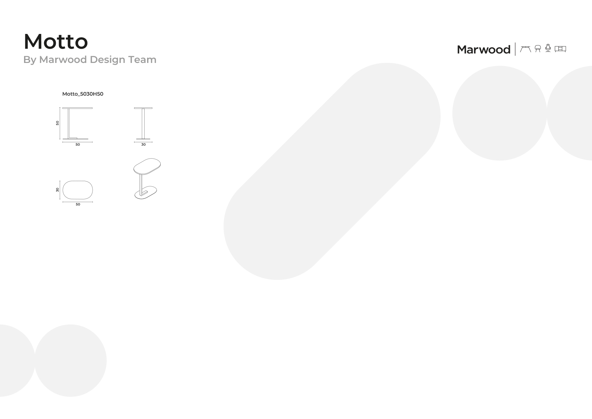 Motto, koltuk ve kanepe altına kolayca giren C formlu bir yan sehpa. Tek ayaklı yapısı tablanın oturma alanına ulaşmasını sağlar, ön tarafta yer kaplamaz. Metal ayak ve melamin tabla farklı renk kombinasyonlarıyla sunulur.